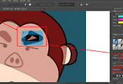 Selection tool로 몽키매트의 눈썹을 수정하는 모습입니다.