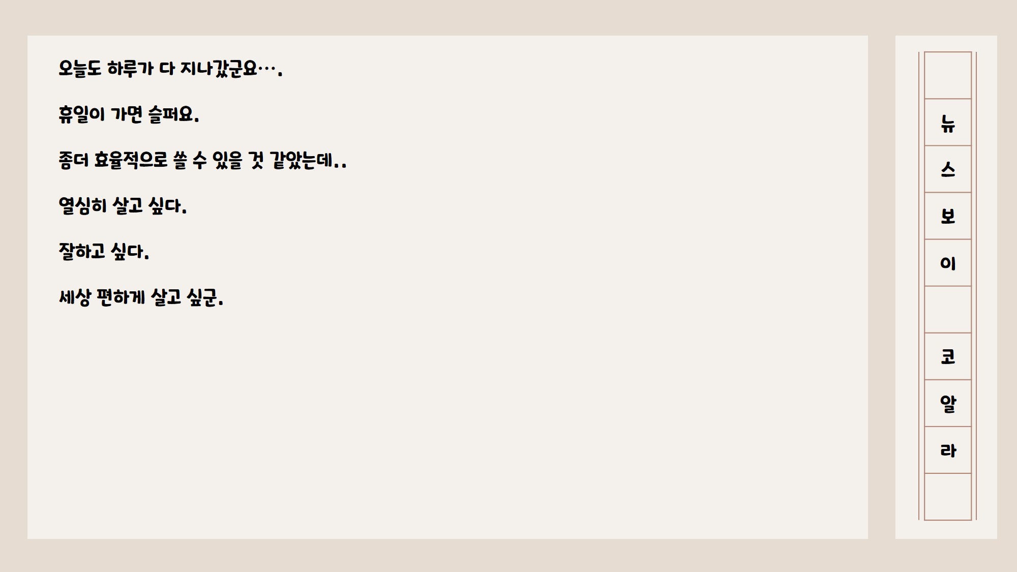 첫 페이지는 새로로 제목을 만들어 보았습니다.