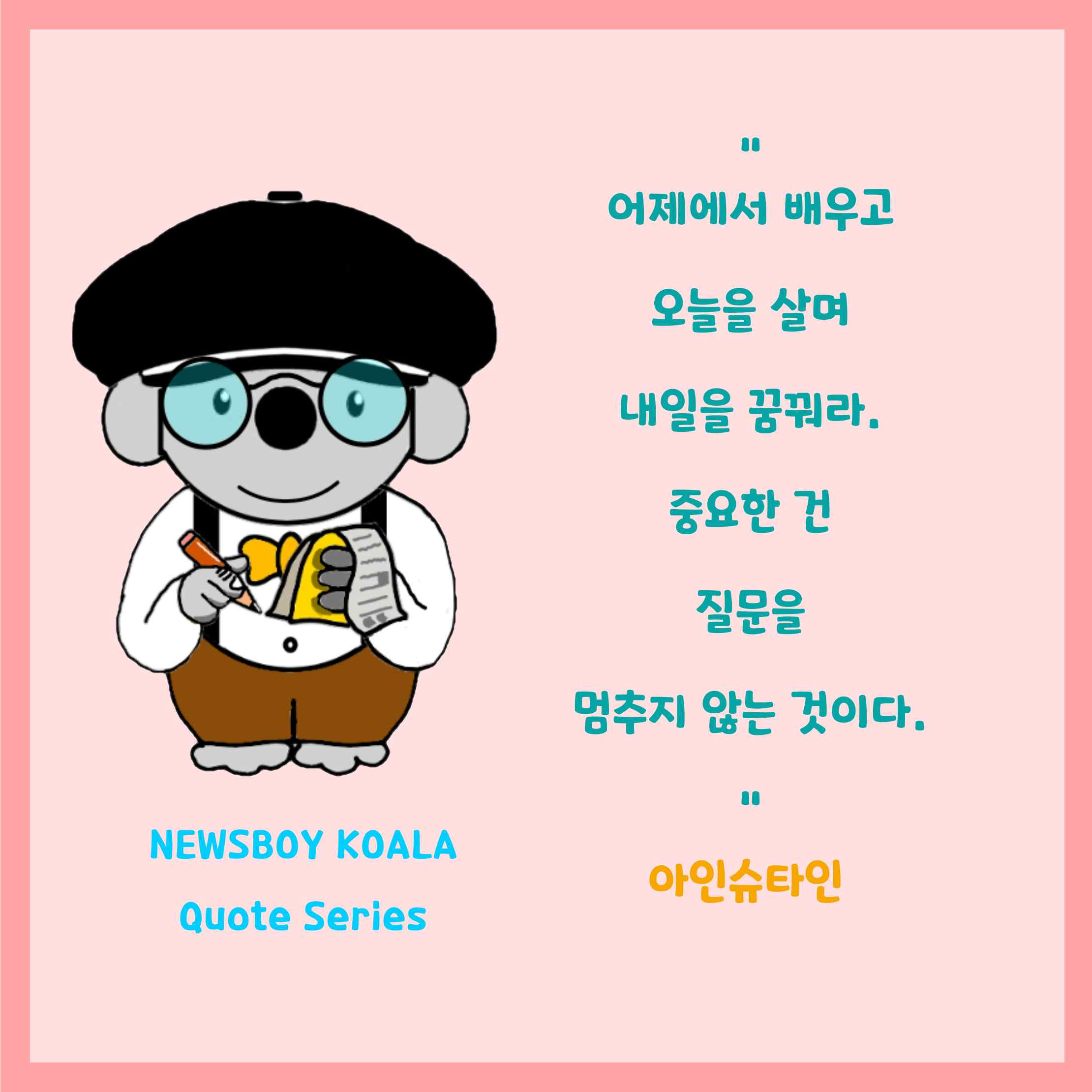 아인슈타인은 "어제에서 배우고 오늘을 살며 내일을 꿈꿔라. 중요한 건 질문을 멈추지 않는 것이다"라고 말했다.