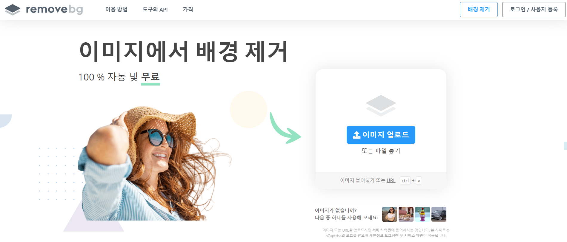 사진이 준비됐다면 리무브 사이트에 접속한다. 링크를 걸어두었으니 참고하길 바란다. 사이트에 접속한 뒤 사진을 드래그해서 올려준다. 그러면 자동으로 배경을 제거한 모습을 보여준다.