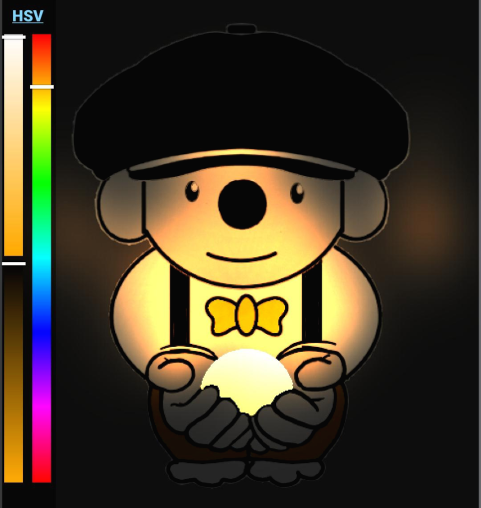 먼저 회색 계열 바탕 위에 서 있는 코알라를 하나 그려줍니다. 마음에 드는 동물이나 인물도 상관 없습니다. 아래 그림처럼 그려주세요. 배경을 짙은 회색으로 처리하는 까닭은 빛 효과를 극대화하기 위해 주변을 어둡게 처리하는 것입니다.