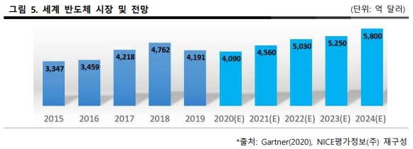 세계 반도체 시장의 경우 시장조사업체 가트너의 보고서에 따르면 2018년부터 급락했던 메모리 시장이 2020년 이후 정보기술과 5G 수요가 증가하면서 칩판매와 제조 설비 투자가 함께 늘어날 것으로 전망되고 있다.