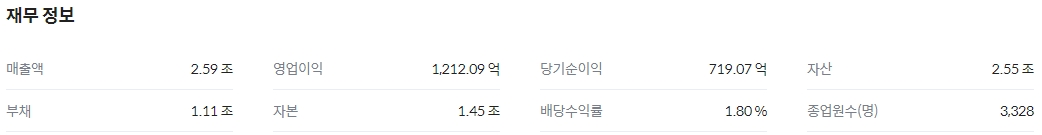 대창은 2020년 매출 9335억 원, 영업이익 283억 원, 순이익 70억 원을 거둔 것으로 파악된다.