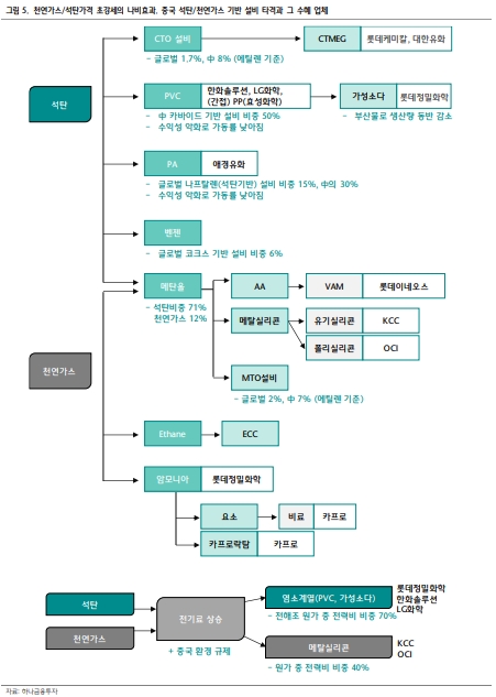 단기적으로 석탄분해설비(CTO)/CTMEG(석탄을 분해해 모노에틸렌글리콜을 만드는 설비) 신규가동 지연 가능성 및 중장기 신규 석유화학 설비 프로젝트의 승인 자체가 까다로워질 수 있는 계기가 될 것으로 판단한다.