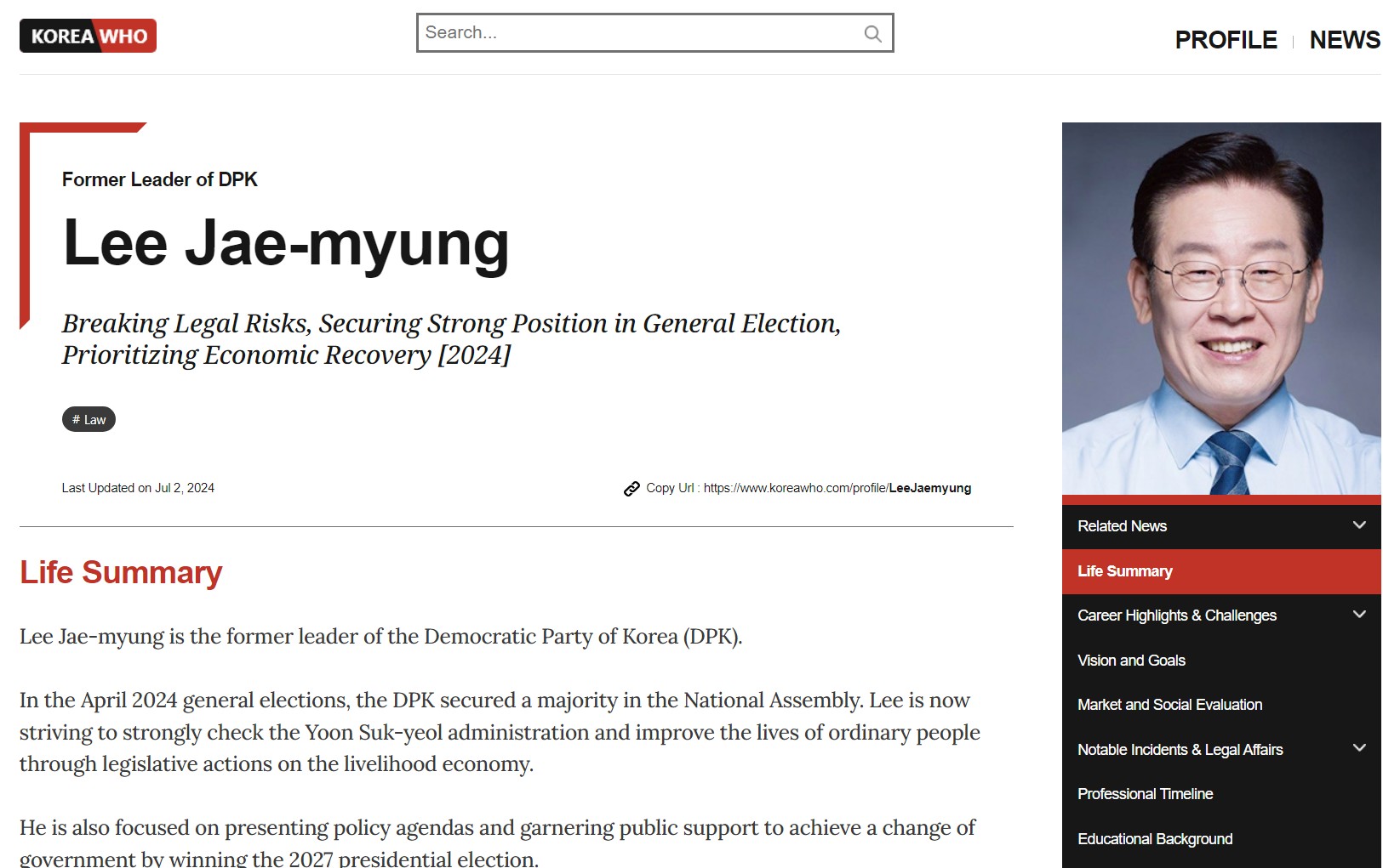아래 기사는 이재명 전 더불어민주당 대표(2024년 7월말 기준)를 다룬 기사입니다.