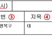 ③ 소재지번 및 건물번호 : 토지가 위치하고 있는 토지의 소재지를 표시합니다.